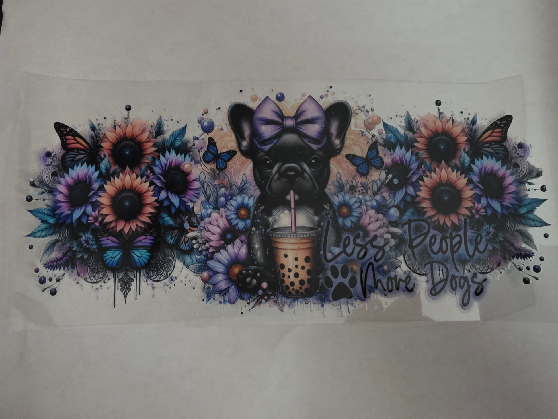 Dog. Frenchie. Bows. Flowers.